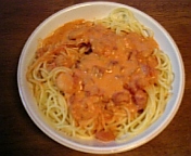 トマトソースに生クリームを入れ塩コショウで整えるだけ。