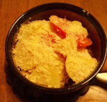輪切りのトマト、じゃがいも、パン粉、チーズを振り