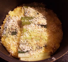 じゃがいもは薄切りにして容器に並べる。 茹でたネギを上に乗せ、溶き卵を回し掛け パン粉をふってバターを散らして 塩コショウしてオーブンへ。 フランスのポウンティに似てますね。アレより簡単。 ヨーロッパはこの手の卵料理って多いのでしょうね。 野菜を入れて卵入れてオーブンって料理。 オーブンに任せッキリに出来るので スペインのトルティーリャより楽だと思います。 |