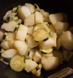 2.フライパンにオリーブ油を多めに引きズッキーニを炒め、火が通ったら