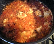 炒って魚と共にブランデーで香り付けしたトマトソースへ。