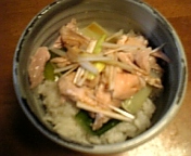 ご飯の上にブツ切り葱と共に乗せます。