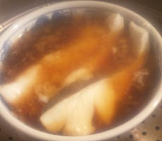 皿に魚を乗せ、鶏がらスープ、ナムプラー、にんにく、