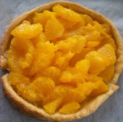 オレンジのタルトと書いてますが、和製ミカンです。 甘夏とか伊予柑とか、そういうものよ。 生地はリンゴのタルトのもの。 蜜柑は加熱すると水が出そうなので生のままオーブンへ。 砂糖を軽く振り掛けましたが まぁ酸味強いですねw 酸味爽やかタルトです。 |
