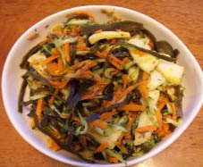 ヨーロッパ圏ってあまり海藻食べない印象なんですが ロシアは食べたりするんですね~ 1.昆布は水で戻して細切りにする。 2.ニンジン、玉ねぎ、イカも細めに切り、①と一緒にざっと炒める。 3.②にピクルスを加え、塩、砂糖、酢、胡椒、ディルで和える。 ピクルス無かったので普通に胡瓜入れたらすごい色に@@; 酢を入れるので昆布が糸引きません。 その辺苦手な方も食べ易いと思います。 PR |