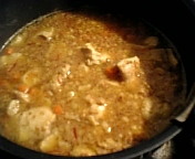 グルジアの郷土料理です。 くるみはホントはすり潰すのですが、ミル出すの面倒なので 粗砕き気味で。 味付けはサフラン、塩、カイエンペッパー とシンプルなのですが、 暫く煮込んだため鶏のブイヨンが出てて 豊かな味に。 新年に食べられることが多いそうです。 |