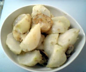 かぶとホタテ貝柱を練りゴマ+塩で炒め煮するシンプル料理。