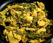 ③:しんなりしてきたら卵と混ぜ醤油、豆板醤を加える。