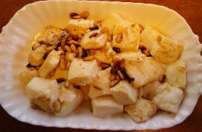 松の実を炒って、再び豆腐を戻して炒める料理。