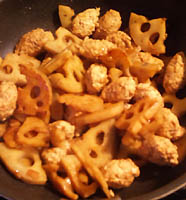 アク抜きした蓮根を炒め(ゆり根より硬いため)