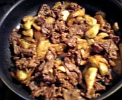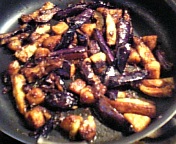 肉は細切れでないし、茄子も皮剥いちゃってますが、麻婆茄子。 中国の茄子料理って皮剥くこと多いんだよね。 ①:フライパンに油を引き、 牛肉を肉汁がなくなるまで炒める。 ②:中央を開け、豆板醤・一味唐辛子を入れて 香りが出るまで炒める。 ③:醤油、酒を振り入れ、皮を剥いて乱切りした 茄子を加え炒める。 油で揚げないタイプです。 調味もフライパン上で混ぜるので手間要らず。 ちょっと辛めでしたが良い感じでしたよ |