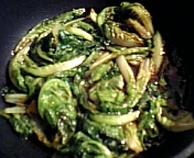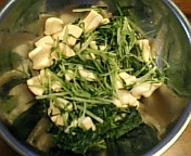 イカと中国セロリを下茹でして作る和え物。 調味は醤油、酒、酢、ゴマ油、きび砂糖 茹でる際湯に油を数滴垂らすと食材に油膜を作ってくれるので 調味料と和えた際に浸透圧で水が出ちゃう ってことがなくなります。 中国セロリの代わりに水菜を使ってみました。 |