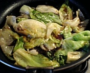 サラダ菜が安かったのでサラダ菜で作ってしまいました。 ①:葉をさっと湯通しする。 ②:油を引いたフライパンを熱し、葉を入れる。 油が全体になじんだらしょうゆ、酒、オイスターソースを加える。 ③:水溶き片栗粉を加え全体に回す。 炒め時間は1分で済む手軽な料理。時間が無い時のおかずに良いです。 葉モノのかさも減ってたくさん食べられます。 |