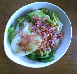 さっと湯に通したレタスに桜エビ、みりん、しょうゆを和えるだけ。