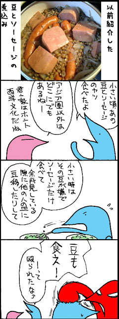 あまり一般の日本の家庭では豆とソーセージの煮込みは食べないよねぇ・・・