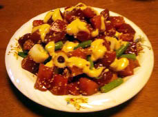 1.マグロは角切りにし醤油、白胡麻を和えしばらく置く。 2.さやいんげんを茹で、竹輪を輪切りにする。 3.マヨネーズと白練り胡麻を混ぜておく。 4.①と②を混ぜ、③を掛ける。 本来は水菜を使いますが…水菜安価で良いのですが取り置き出来ないので もう少し日持ちする豆系で。水菜の方がシャキシャキしますよ。 練り胡麻の代わりに胡麻ダレ使用。濃厚な感じです。 |