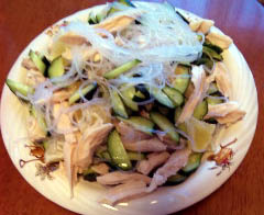 茹で鶏、春雨、胡瓜、オレンジの取り合わせ。 オレンジというか、妹にも貰った柚と檸檬の掛け合わせです。 人参かトマトで赤色を入れても良いのですが 皿にてんこもりになってしまったので とりあえずこんなもんで。 ドレッシングを適当に作成。 鶏の茹で汁2:柑橘入り塩ぽんず2:醤油2:胡麻油1 醤油は1でも良いと思います。 春雨が水出るかな と思って濃い目にしてます。 マヨネーズや中華ドレッシングでも良いと思います。 |