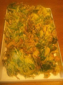 そのまま火に掛けアルコールを飛ばし 醤油で味付け。 醤油入れすぎかな~;と思ったら 案の定しょっぱい。 味を丸くするなら トマト水煮 か 卵 トマトの方が誤魔化し利くんですが 弟が「またトマト?」とか言いそうなので 卵とじで。 基本醤油味、ほんのりワイン味。 |